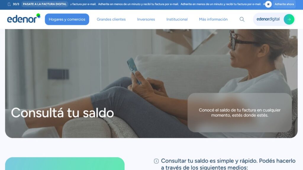 1️⃣ Plataforma edenordigital: Entrá en edenordigital.com. Es la oficina virtual completa donde podés visualizar saldos, descargar facturas que ya vencieron y abonarlas con tarjeta o saldo de Mercado Pago.
